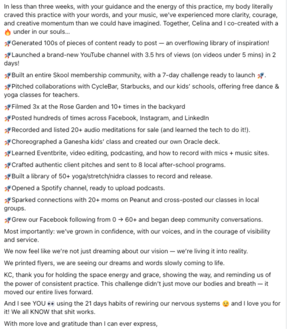 This is about alignment, embodiment, and energy that produces results, in your body and your bank account.
